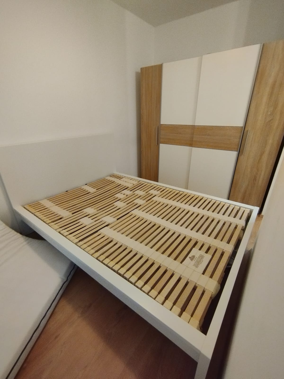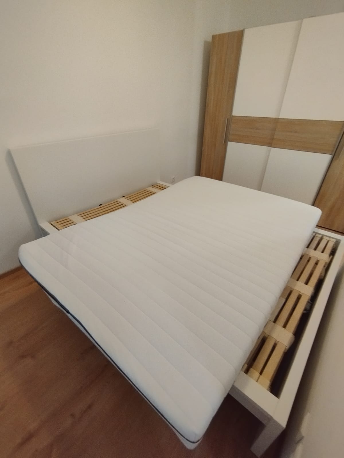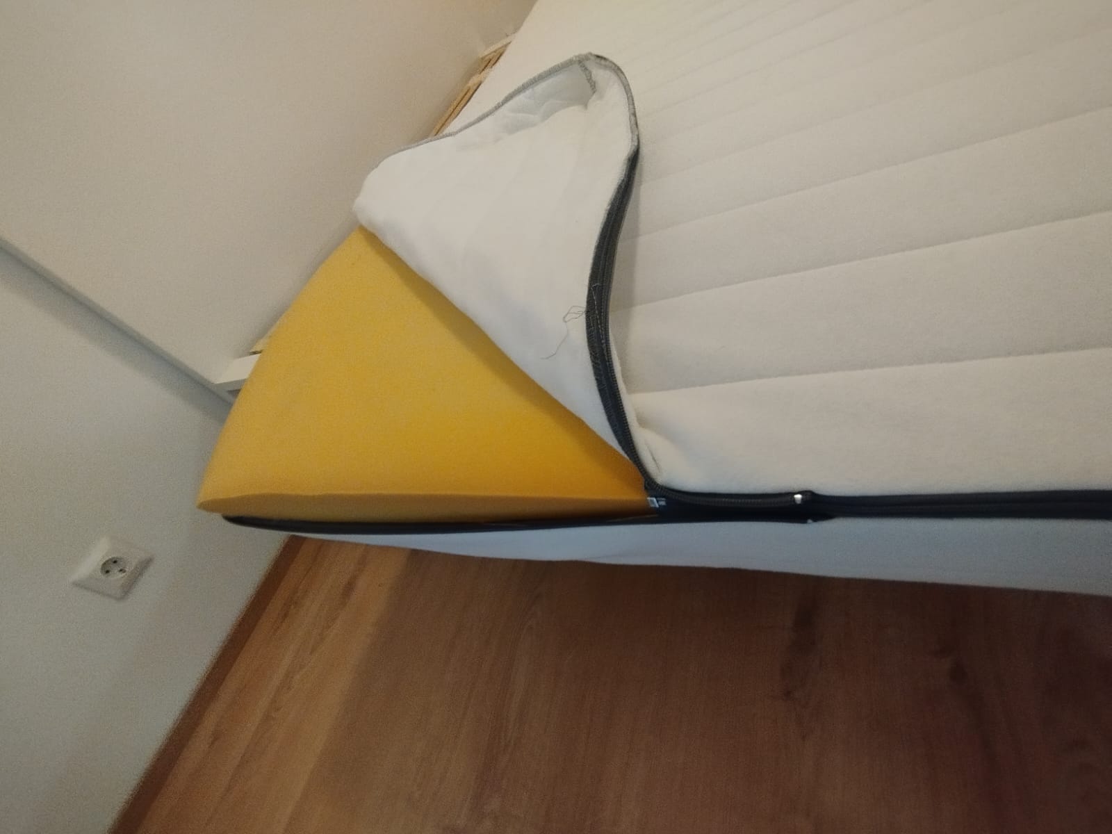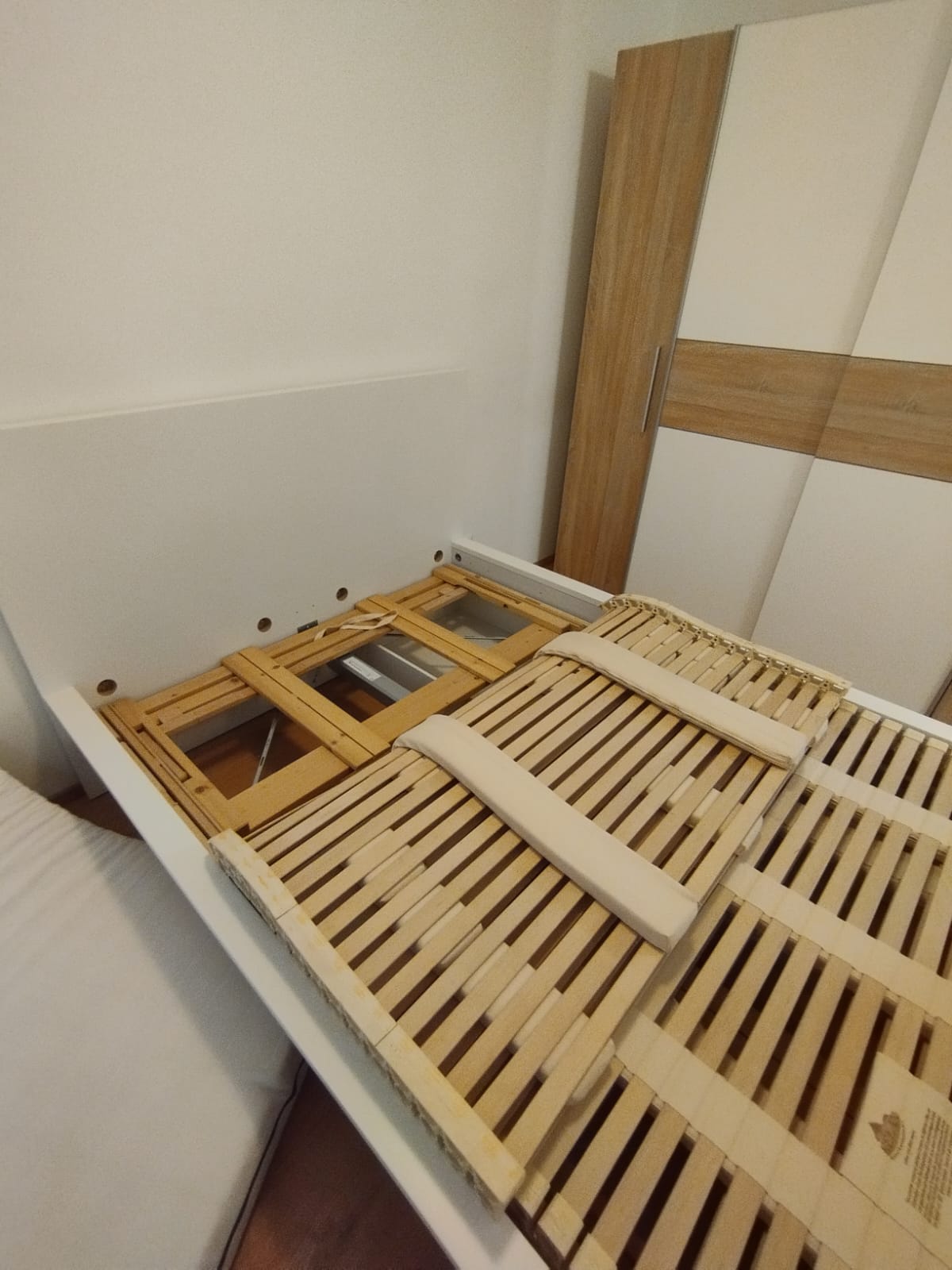 Zu diesem Bett gehört noch ein Balken und ein Untergestell plus abnehmbare und waschbarer Matratzenbezug. Alles zusammen um 200 Euro.